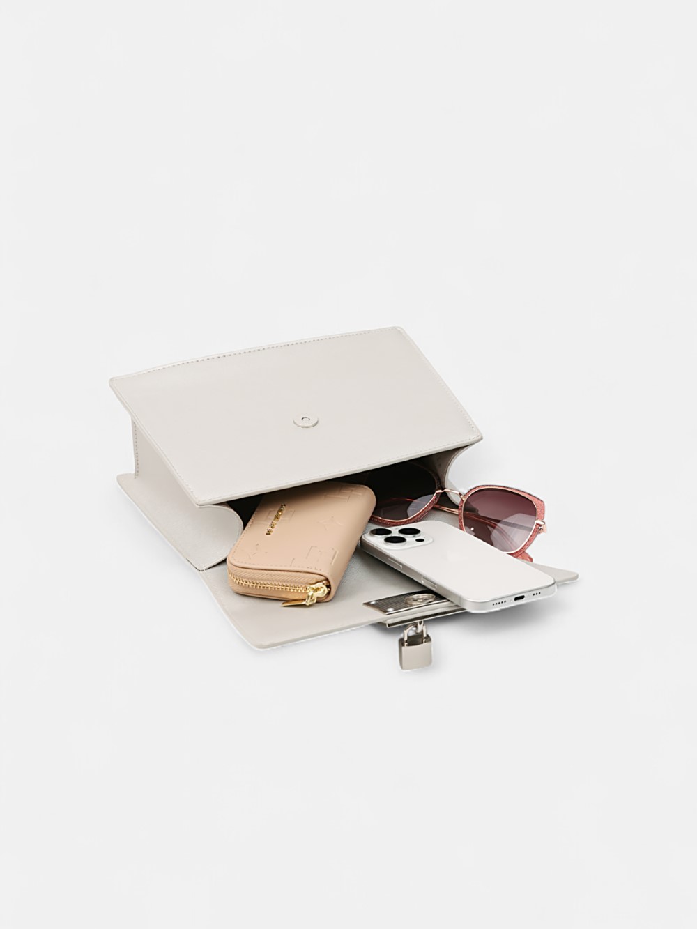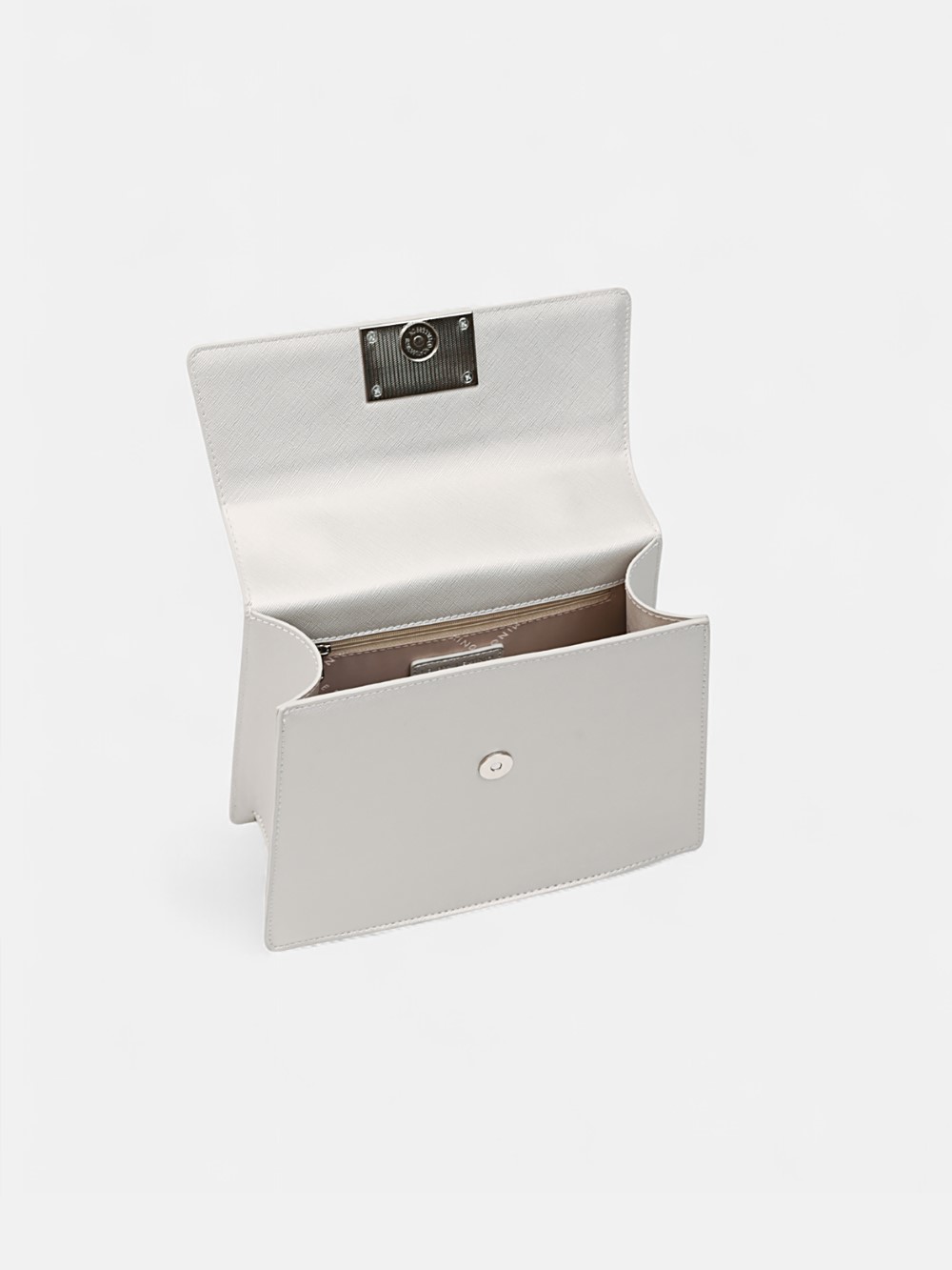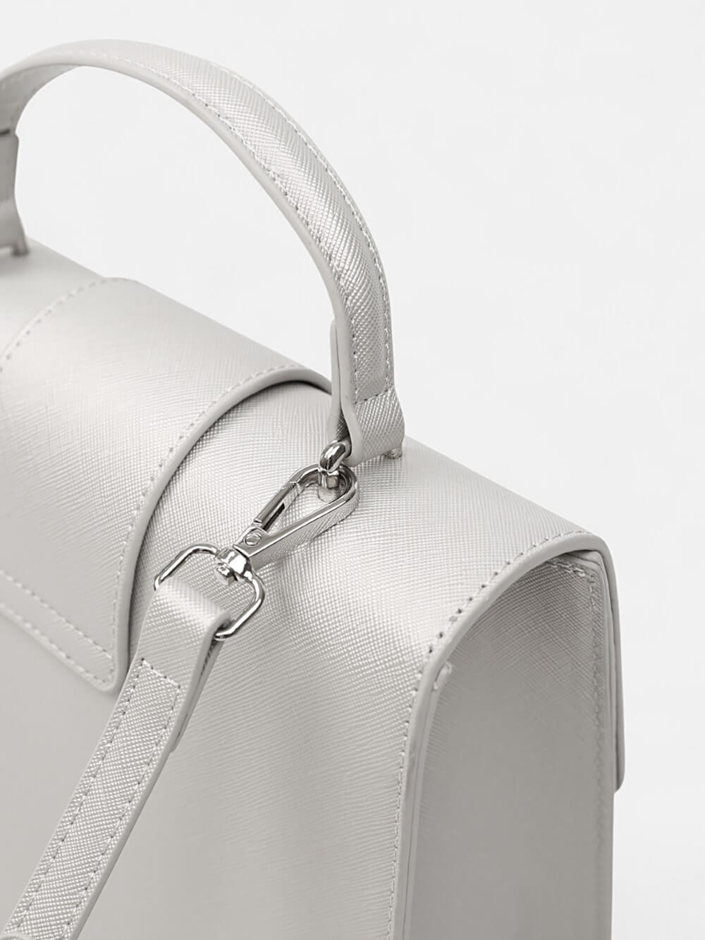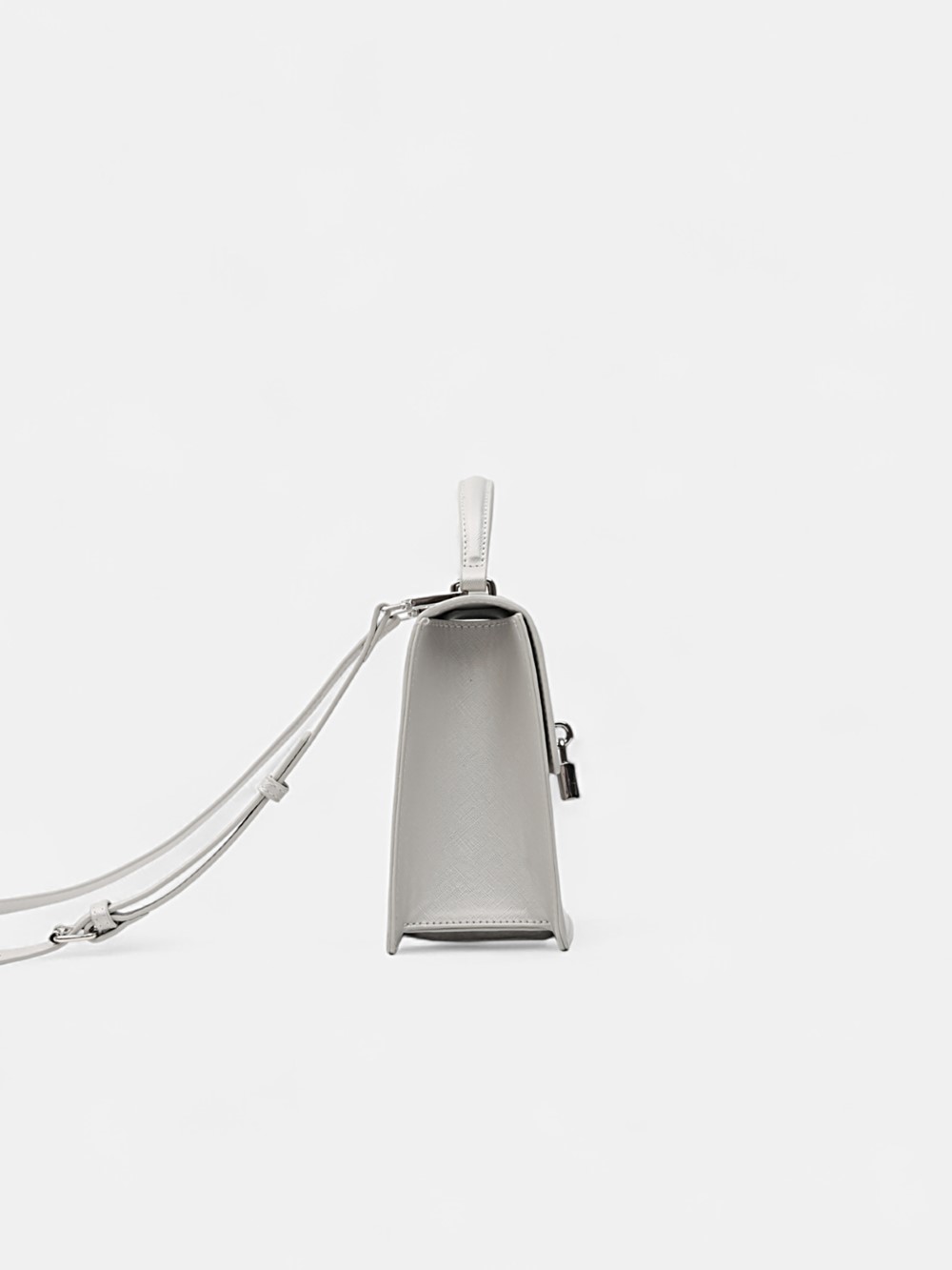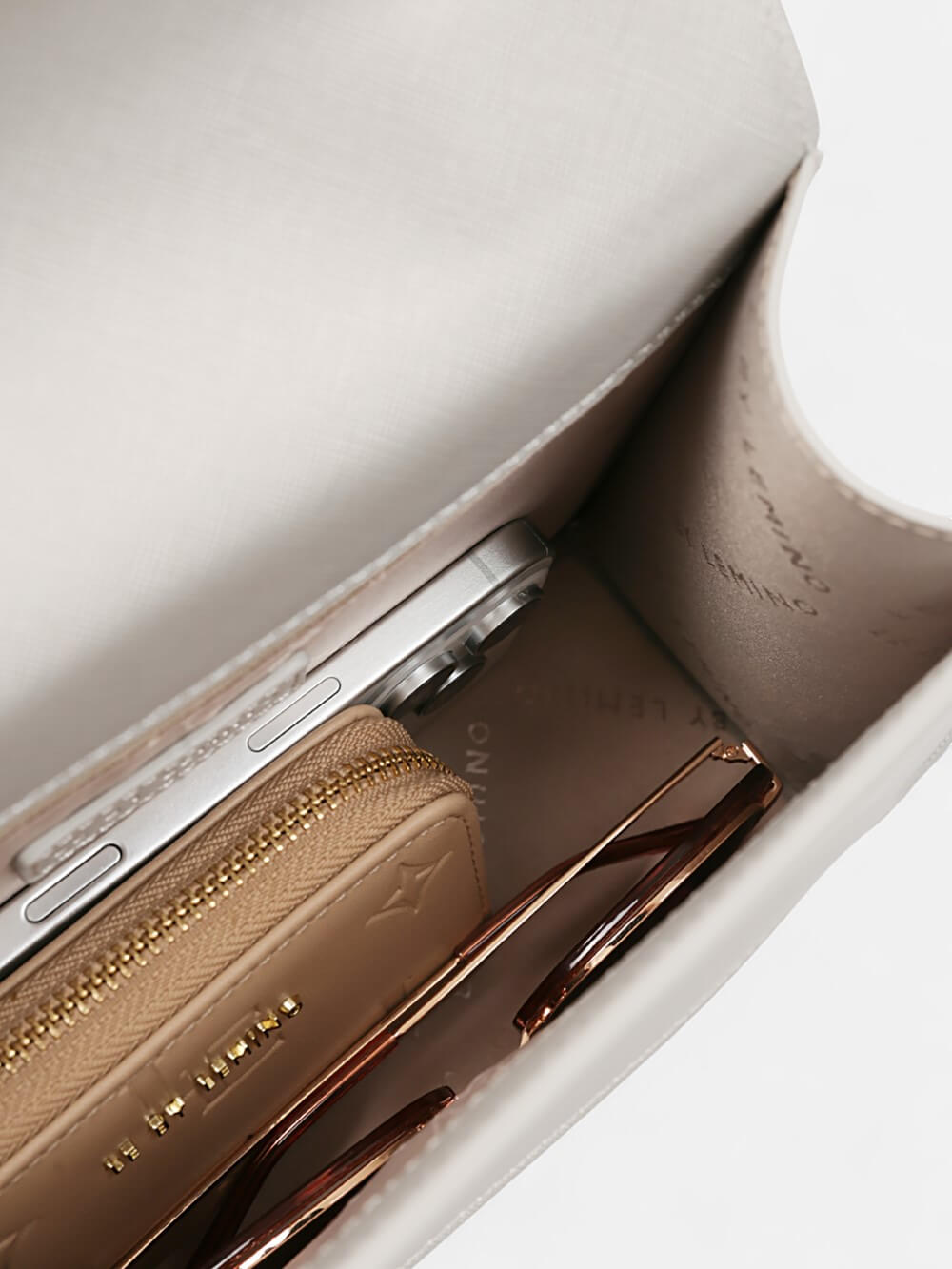 Túi top-handle LE BY LEMINO phom hộp giữ dáng, dây đeo tháo rời linh hoạt, đủ chỗ cho điện thoại và ví mini—chuẩn mực tối giản cho mọi ngày