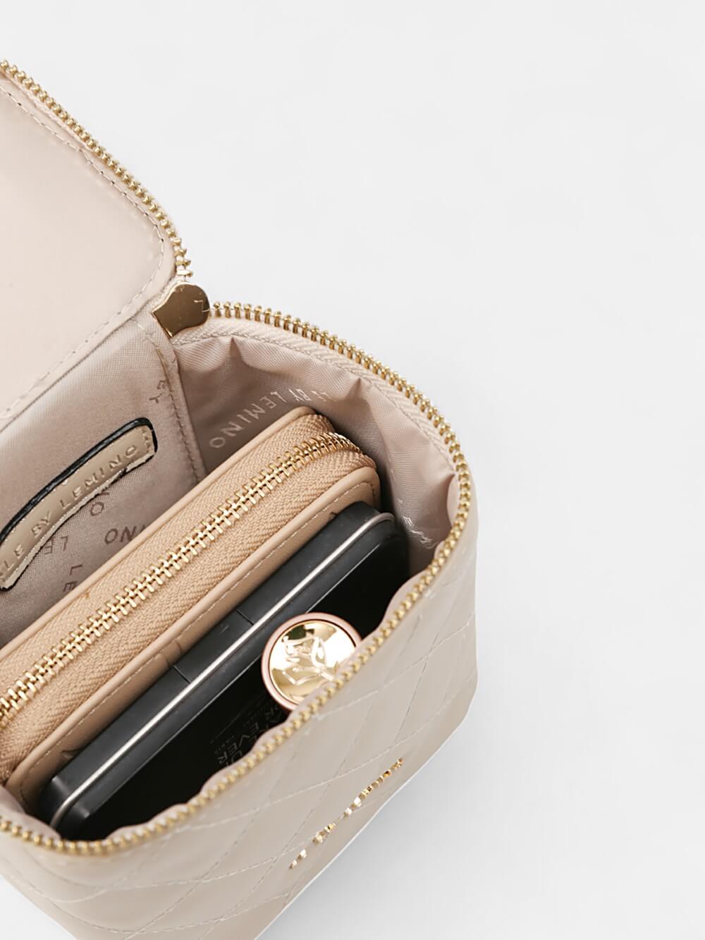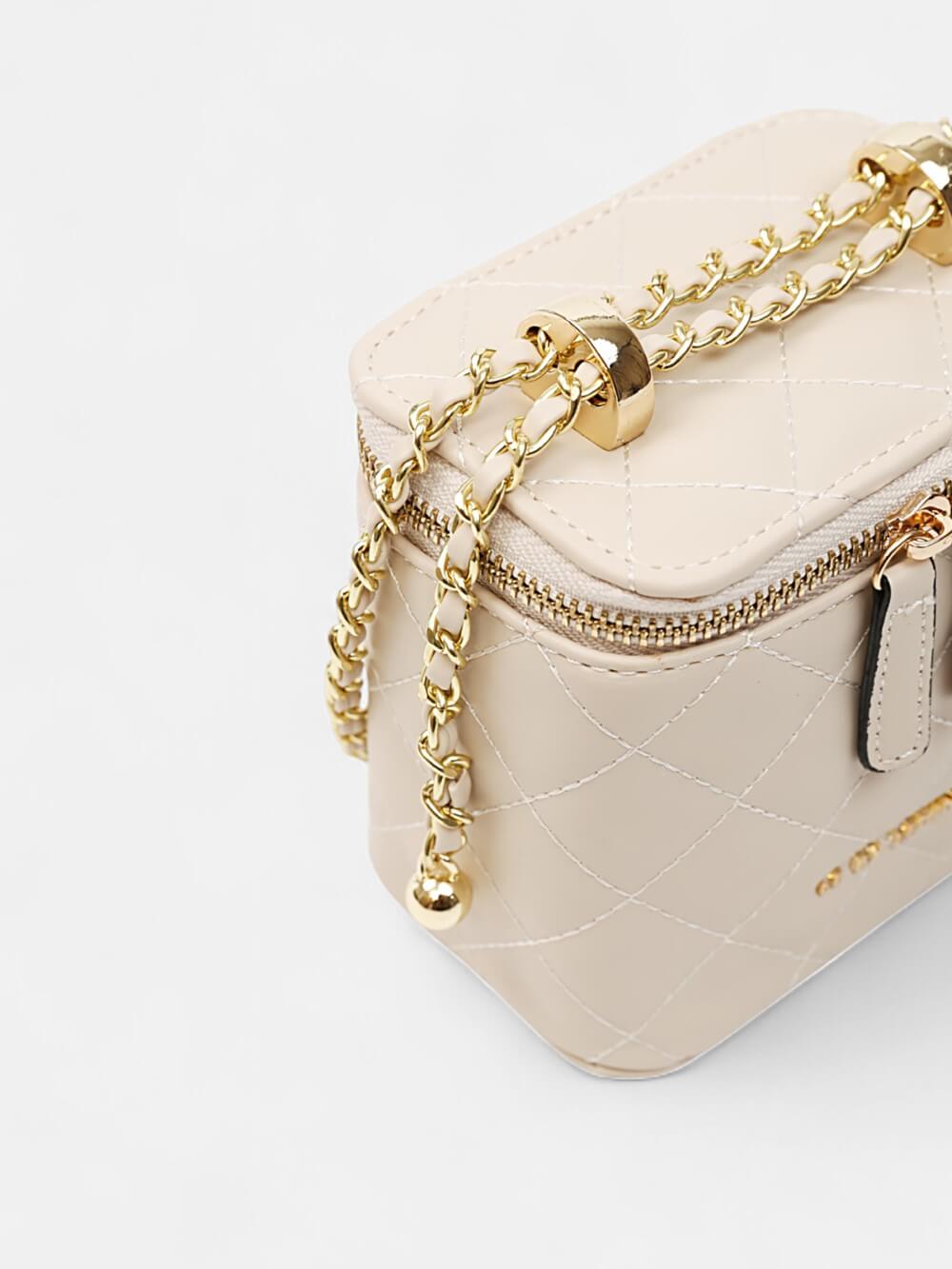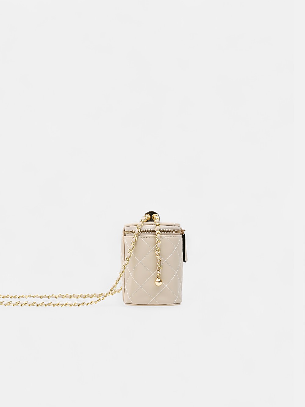 Nhỏ xinh nhưng “đủ ý”, chiếc mini box bag chần quả trám mang đến điểm nhấn hiện đại với dây xích vàng kim và khóa kéo đôi tiện dụng. Phom hộp cứng cáp giữ dáng chuẩn, ngăn chứa gọn gàng cho những vật dụng thiết yếu mỗi ngày. Đeo vai hay đeo chéo đều thanh lịch – một lựa chọn tối giản để nàng hoàn thiện mọi outfit, từ công sở đến dạo phố.