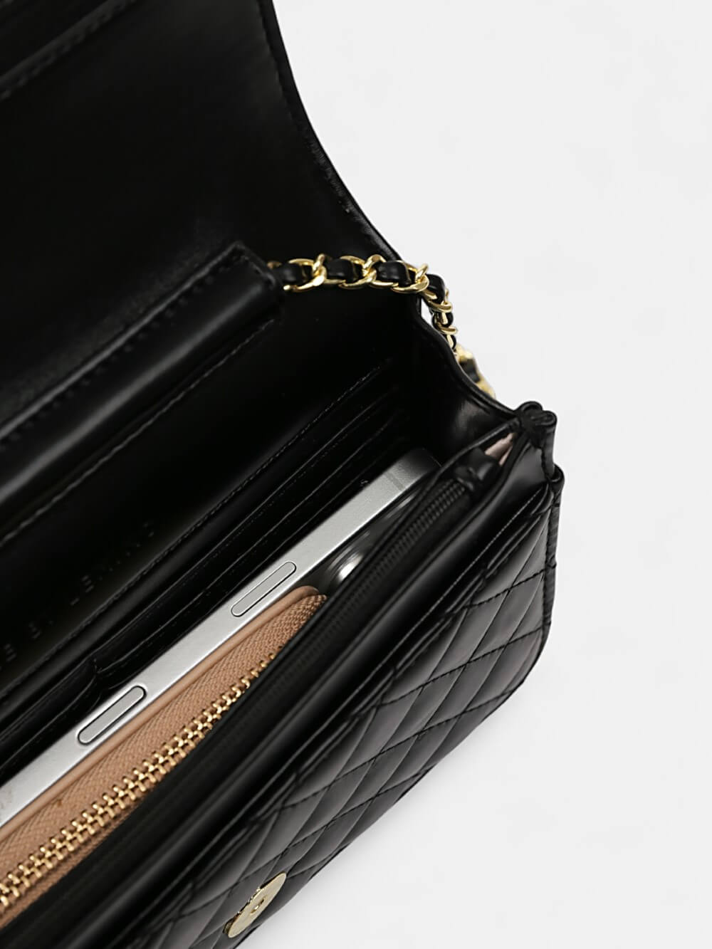Thanh lịch trong từng chi tiết, chiếc wallet-on-chain chần quả trám là lựa chọn hoàn hảo cho nàng yêu sự tối giản. Nắp gập gọn gàng, dây xích vàng kim điểm charm tinh tế, phom nhỏ xinh nhưng vẫn đủ chỗ cho điện thoại, ví mỏng và vài món đồ cần thiết. Đeo vai hay đeo chéo đều đẹp – một phụ kiện linh hoạt đưa nàng từ công sở đến hẹn hò chỉ trong một nhịp.