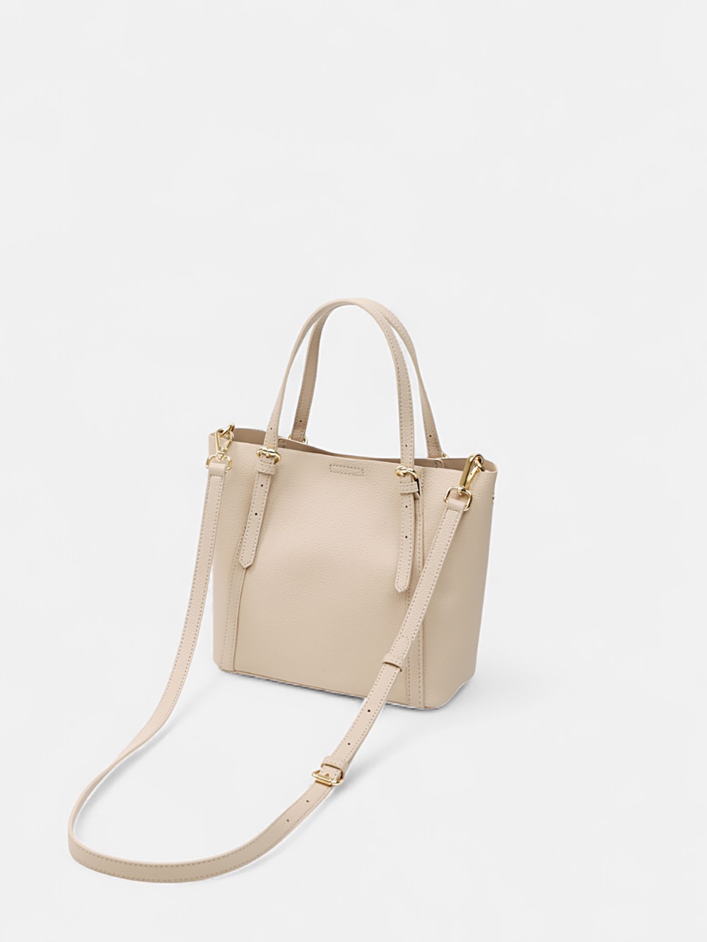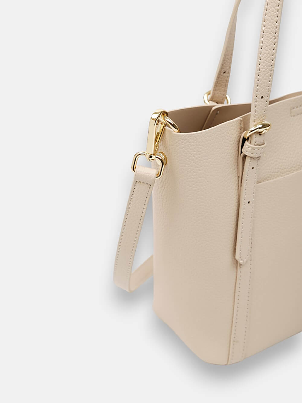Tối giản nhưng tinh tế, chiếc mini tote phom đứng mang đến sự thanh lịch cho mọi ngày. Hai quai xách đi kèm dây đeo dài tháo rời giúp nàng linh hoạt nhiều cách mang; ngăn chính rộng rãi cùng túi phụ nắp bấm cho thẻ và vật dụng cần lấy nhanh. Cứng cáp giữ dáng, dễ phối từ công sở đến cuối tuần – một chiếc túi “đa nhiệm” hoàn thiện mọi outfit hiện đại.
