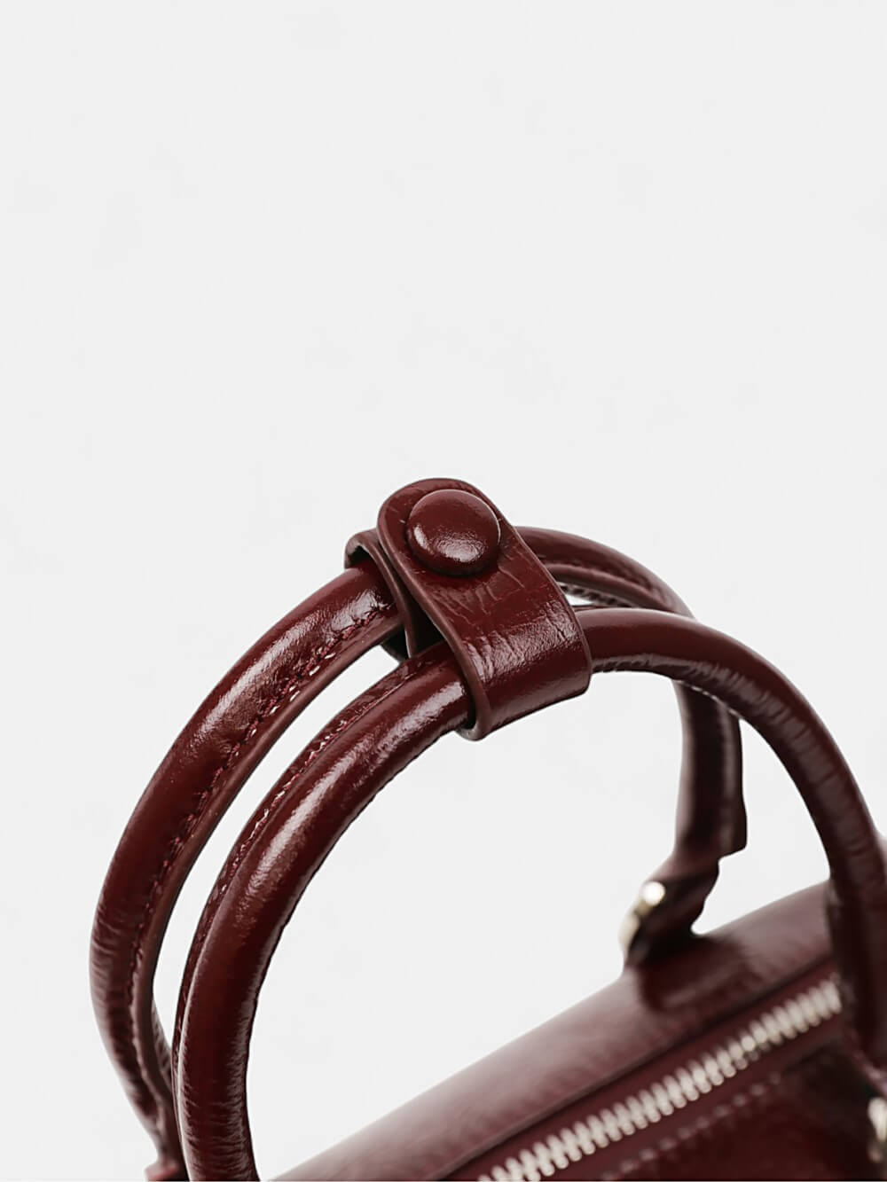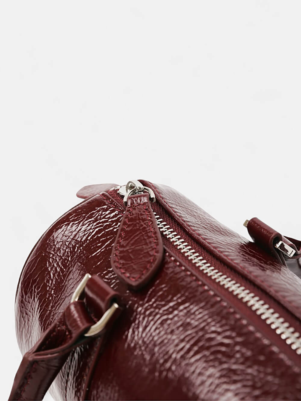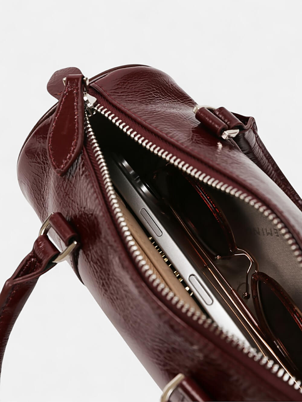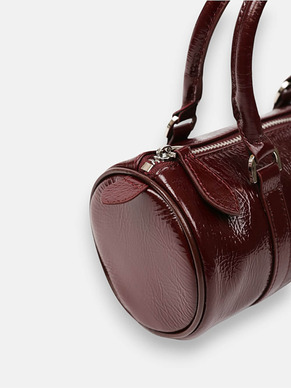 Mini barrel bag ánh kim LE BY LEMINO – phom trụ giữ dáng, khóa kéo an toàn, dây đeo tháo rời linh hoạt; nhỏ gọn nhưng đủ chỗ cho vật dụng mỗi ngày