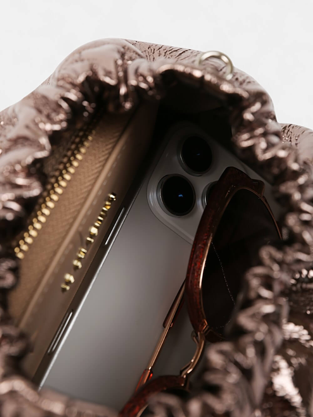 Mini ruched pouch ánh kim LE BY LEMINO – nhún mềm nữ tính, 2 dây đeo linh hoạt; điểm nhấn hoàn hảo cho cả ngày và buổi tối