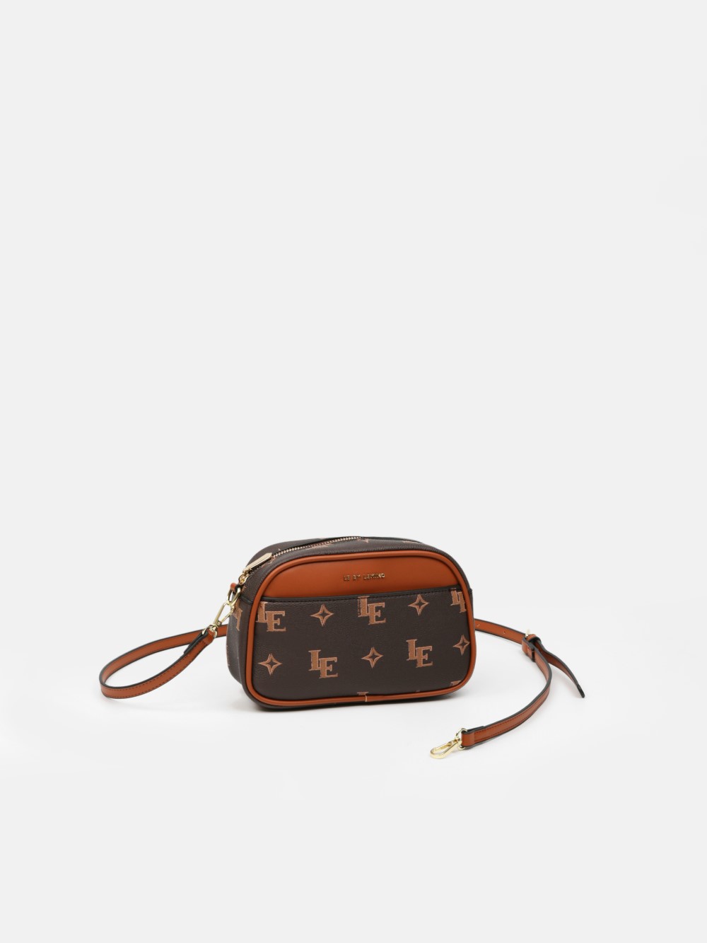 Thiết kế túi đeo chéo dáng hộp ngang nhỏ gọn, mang vẻ hiện đại và linh hoạt cho nhịp sống hằng ngày. Bề mặt phủ họa tiết LE monogram đặc trưng, tạo điểm nhấn thương hiệu tinh tế nhưng không phô trương.