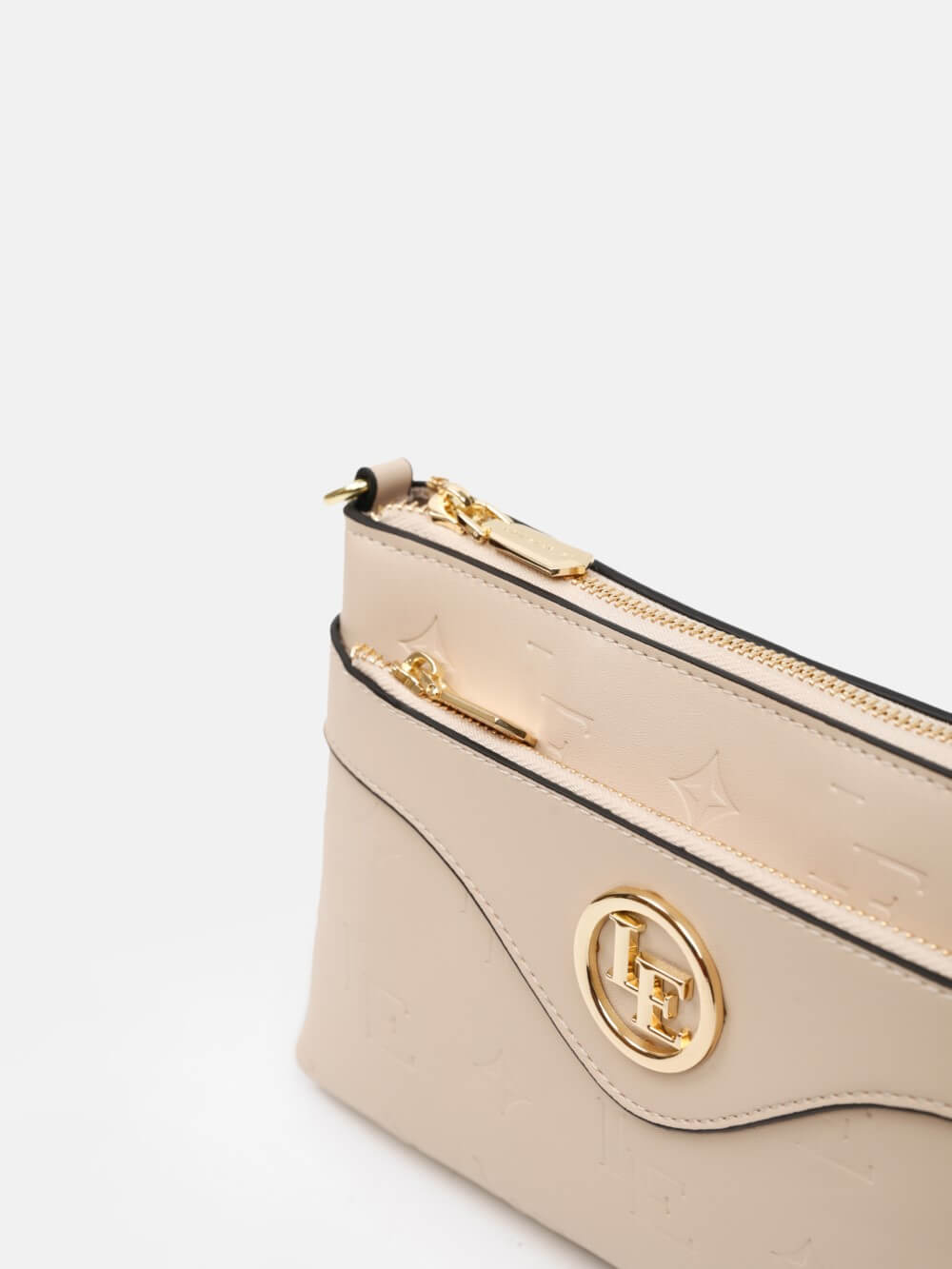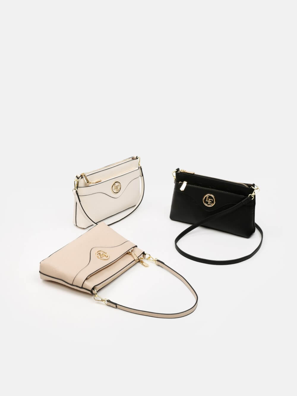 Thiết kế dáng thanh mảnh, lấy cảm hứng từ tinh thần tối giản hiện đại. Điểm nhấn nổi bật nằm ở đường cắt uốn mềm mại phía mặt trước kết hợp khóa tròn logo kim loại ánh vàng – tạo tổng thể tinh tế và sang trọng.