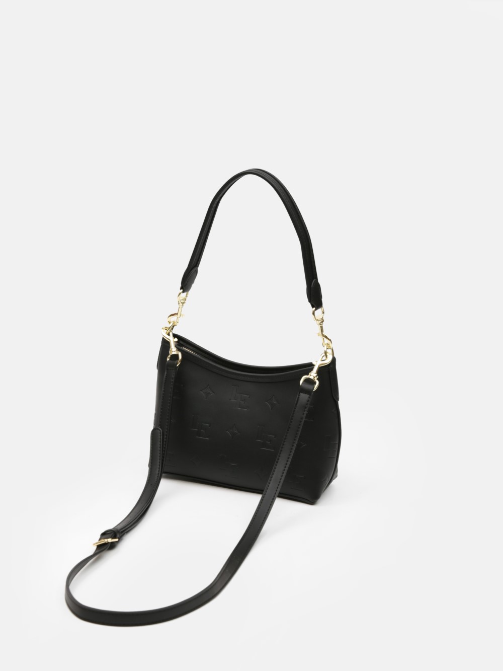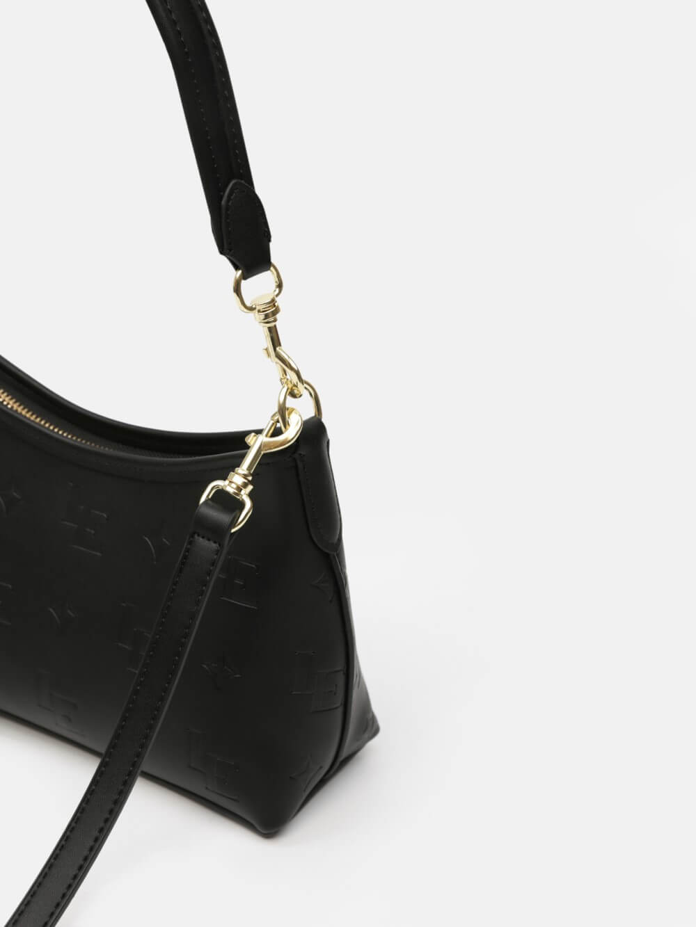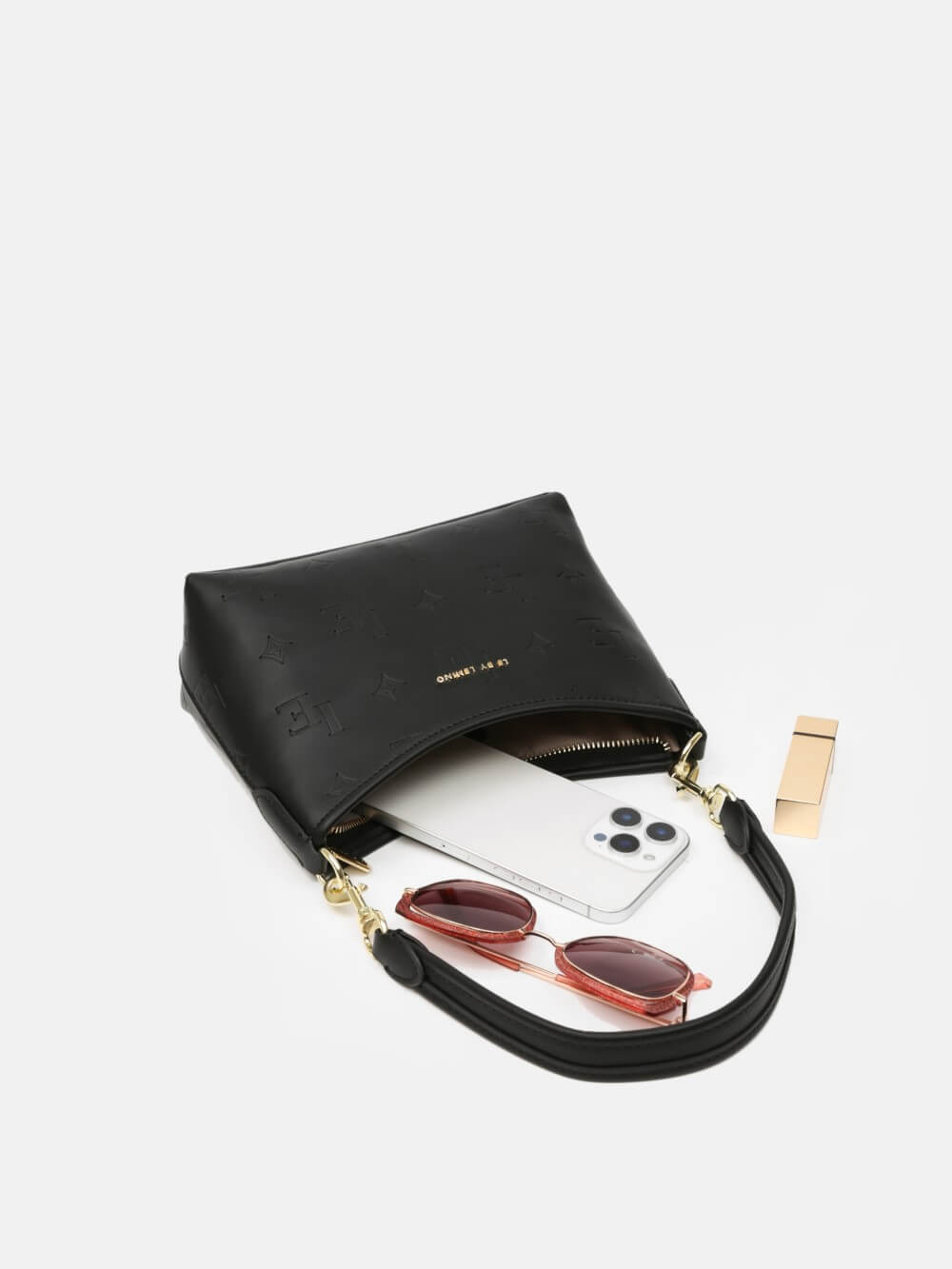 Thiết kế túi đeo vai dáng cong mềm mại, mang tinh thần tối giản hiện đại. Bề mặt được xử lý dập nổi họa tiết LE monogram tinh tế, tạo hiệu ứng chiều sâu sang trọng mà vẫn giữ sự thanh nhã.
